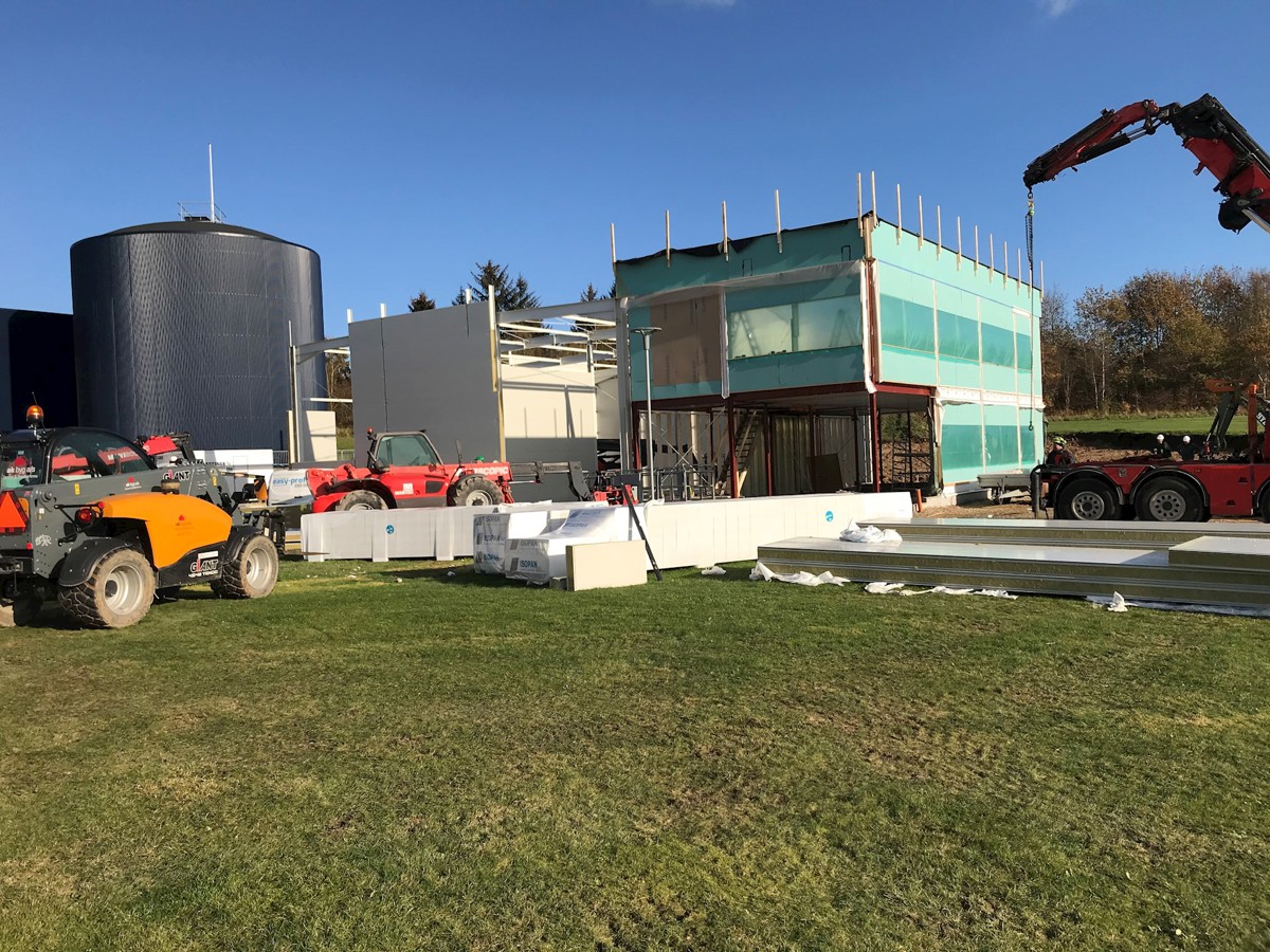 Varmepumpen forventes at klare hele sommerbehovet og dele af vinterbehovet, ialt ca. 30 - 35 % af det årlige varmebehov. - Administrationen og rørlageret flyttes til den nye bygning og i den eksisterende bygning indrettes værksted, målerlaboratorie og reservedelslager.